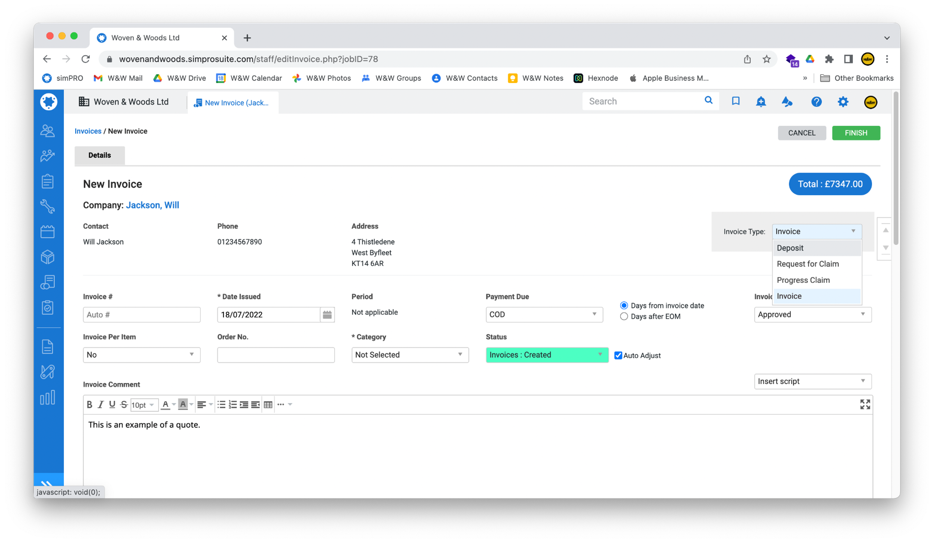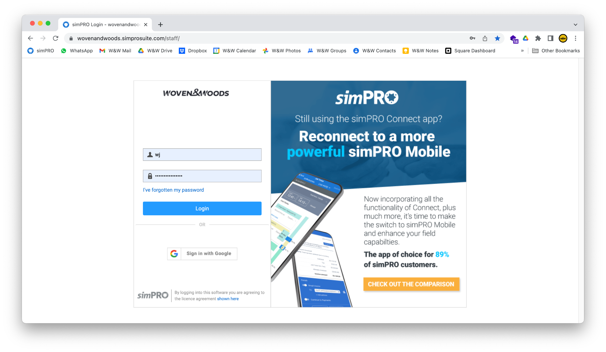 https://wovenandwoods.simprosuite.com/into the address bar:
