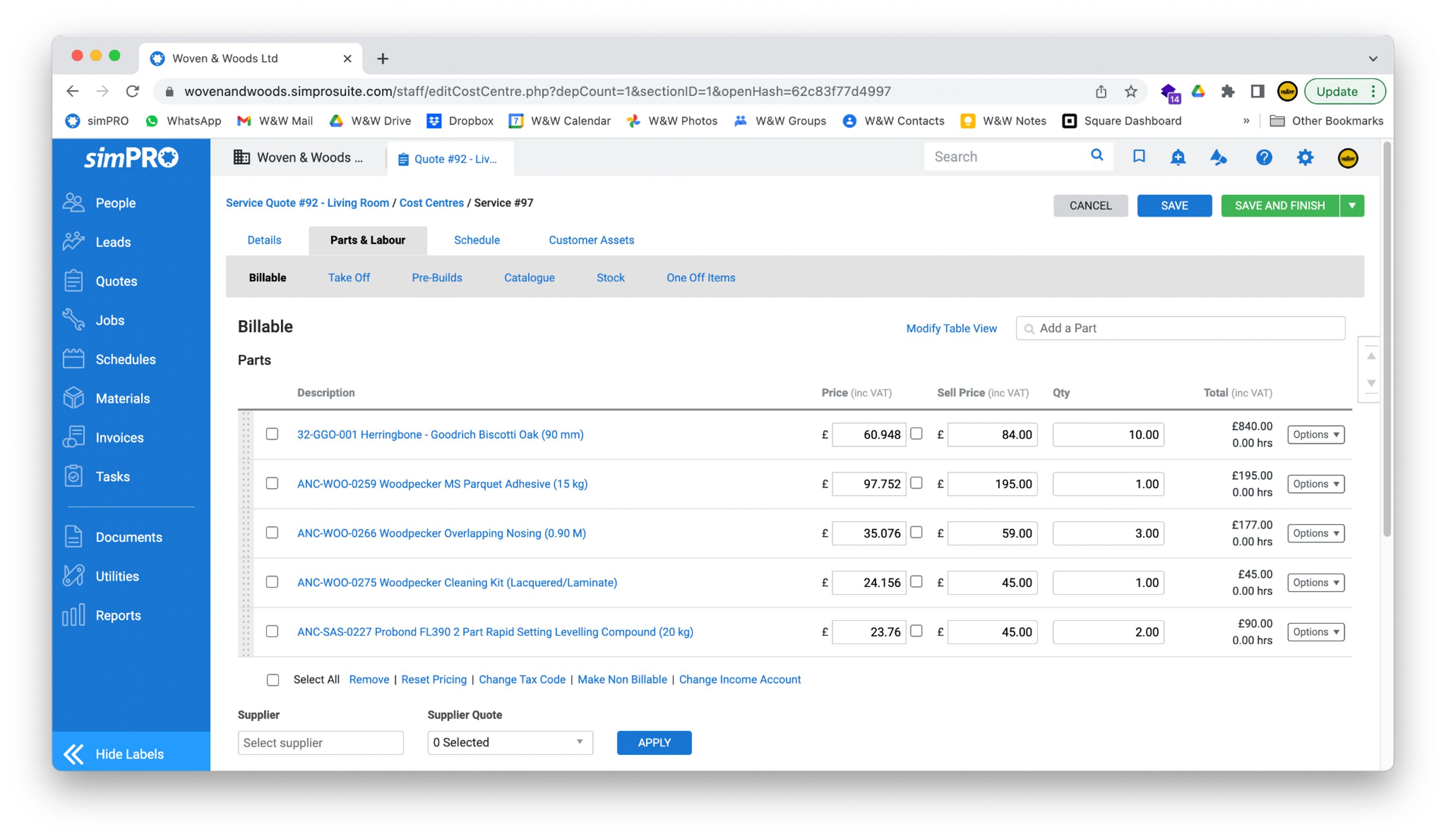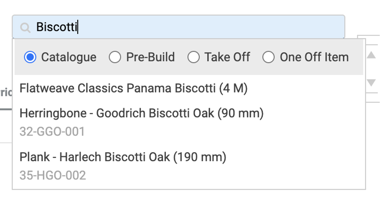 - In the Billable screen, add items to the quote using the search box in the top-right corner. Start typing the product name, range, or manufacturer, and it should appear in the drop-down box.