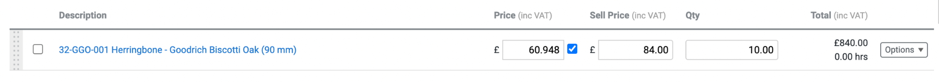 - You can also rearrange items on this screen using the dotted grab handles on the left-hand side of each row. Just click and drag. The order of items here will be reflected in the final quote, so ensure it’s correct.
