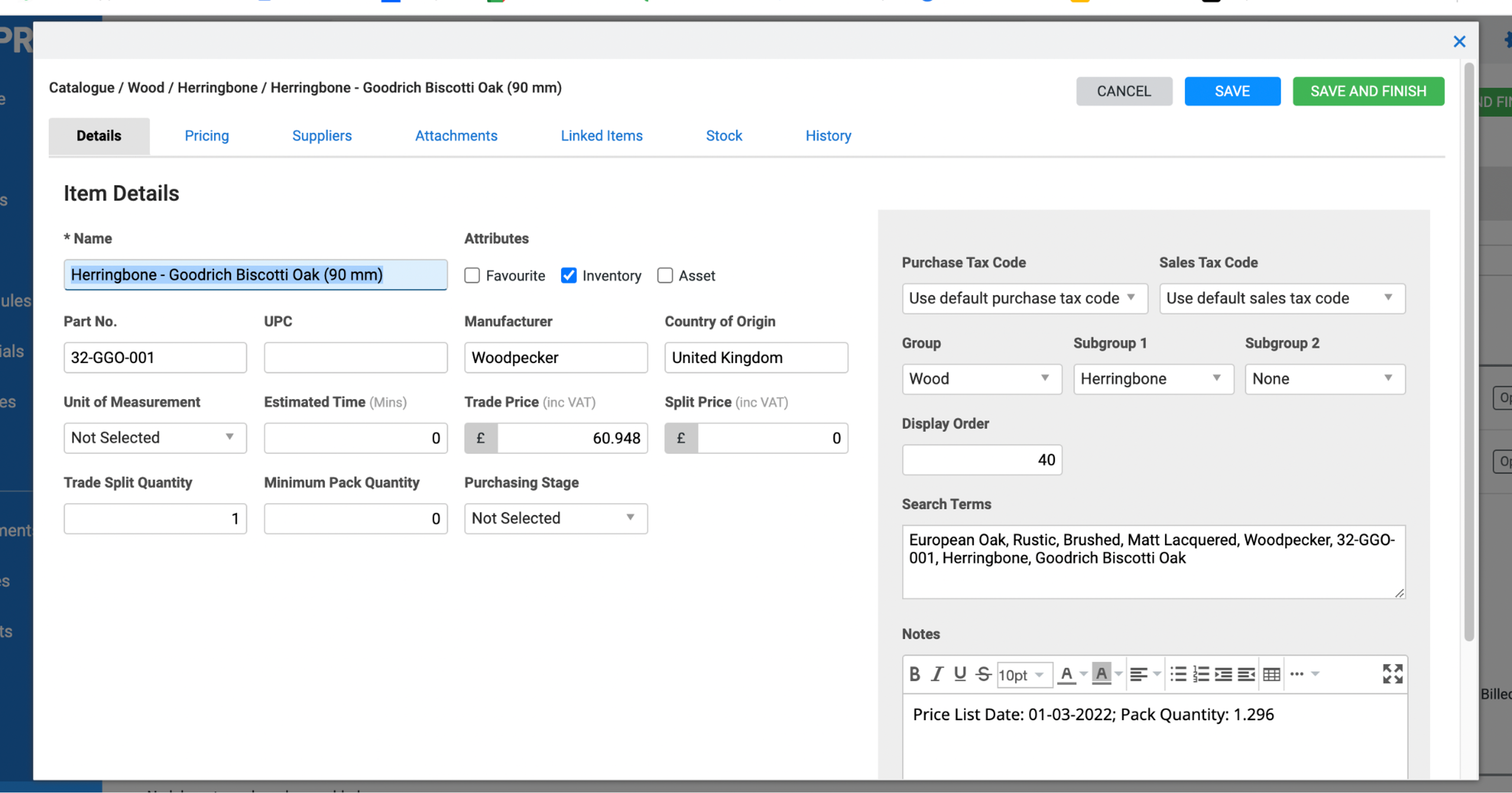 - Enter the relevant data and then click the green Save and Finish button.