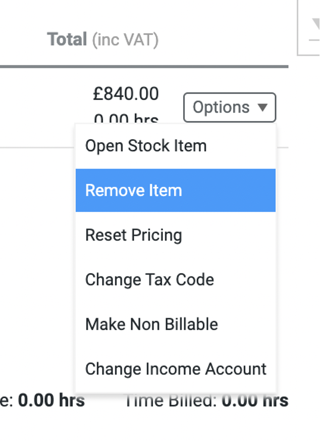 - You can now delete any labour items in the same way you would a normal item (using the Options menu on the right-hand side).