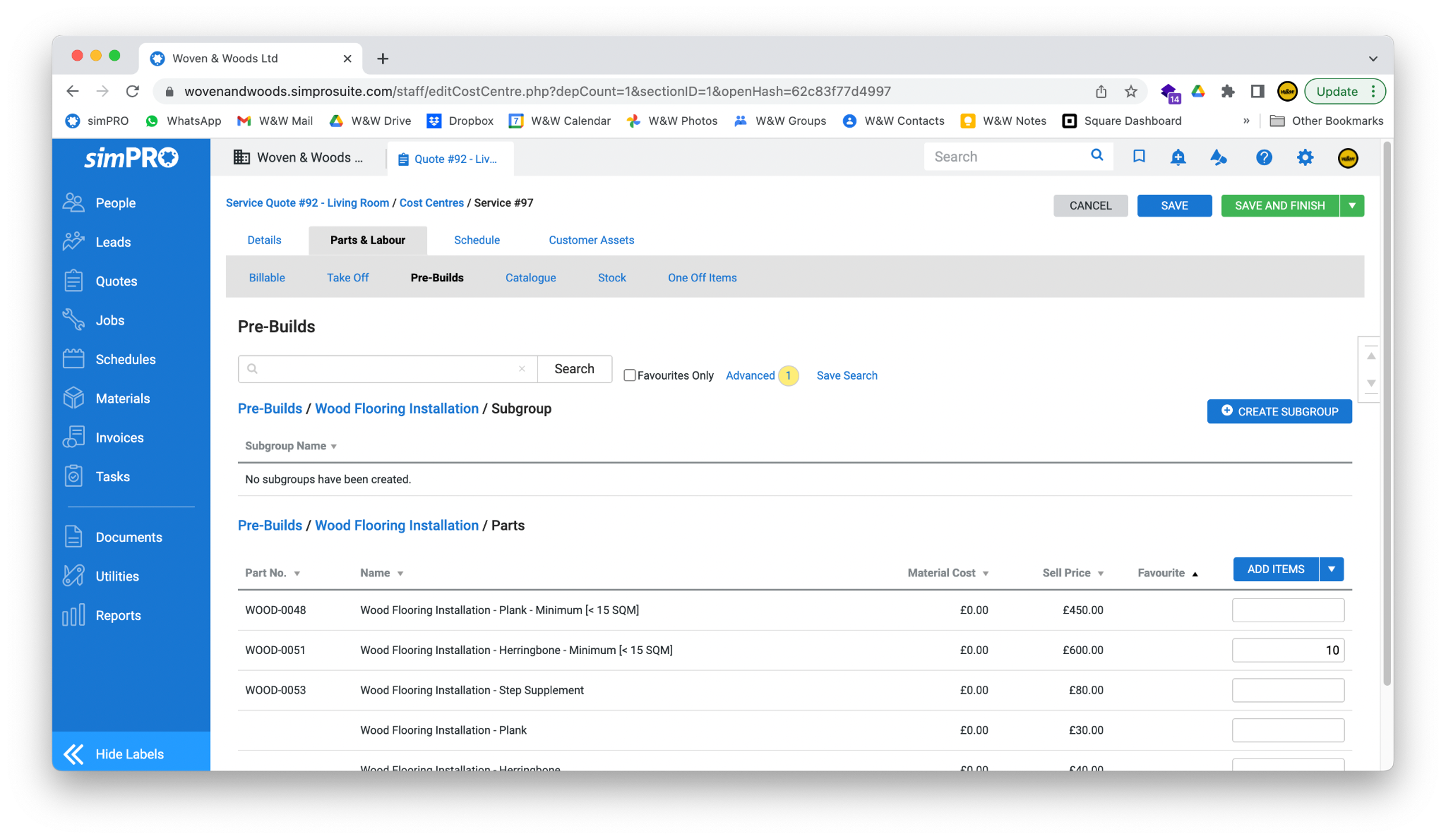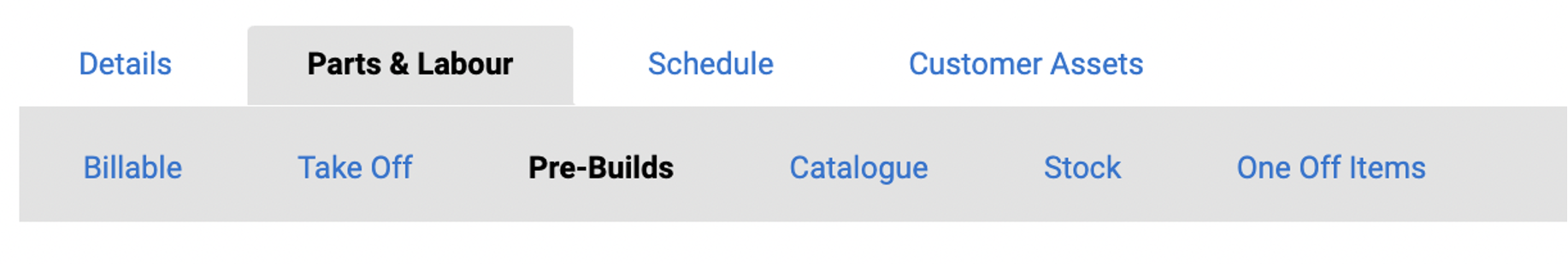 Section titled “Add Labour”- Labour items can be added in the Pre-Builds section. Access this by clicking the link in the grey bar.