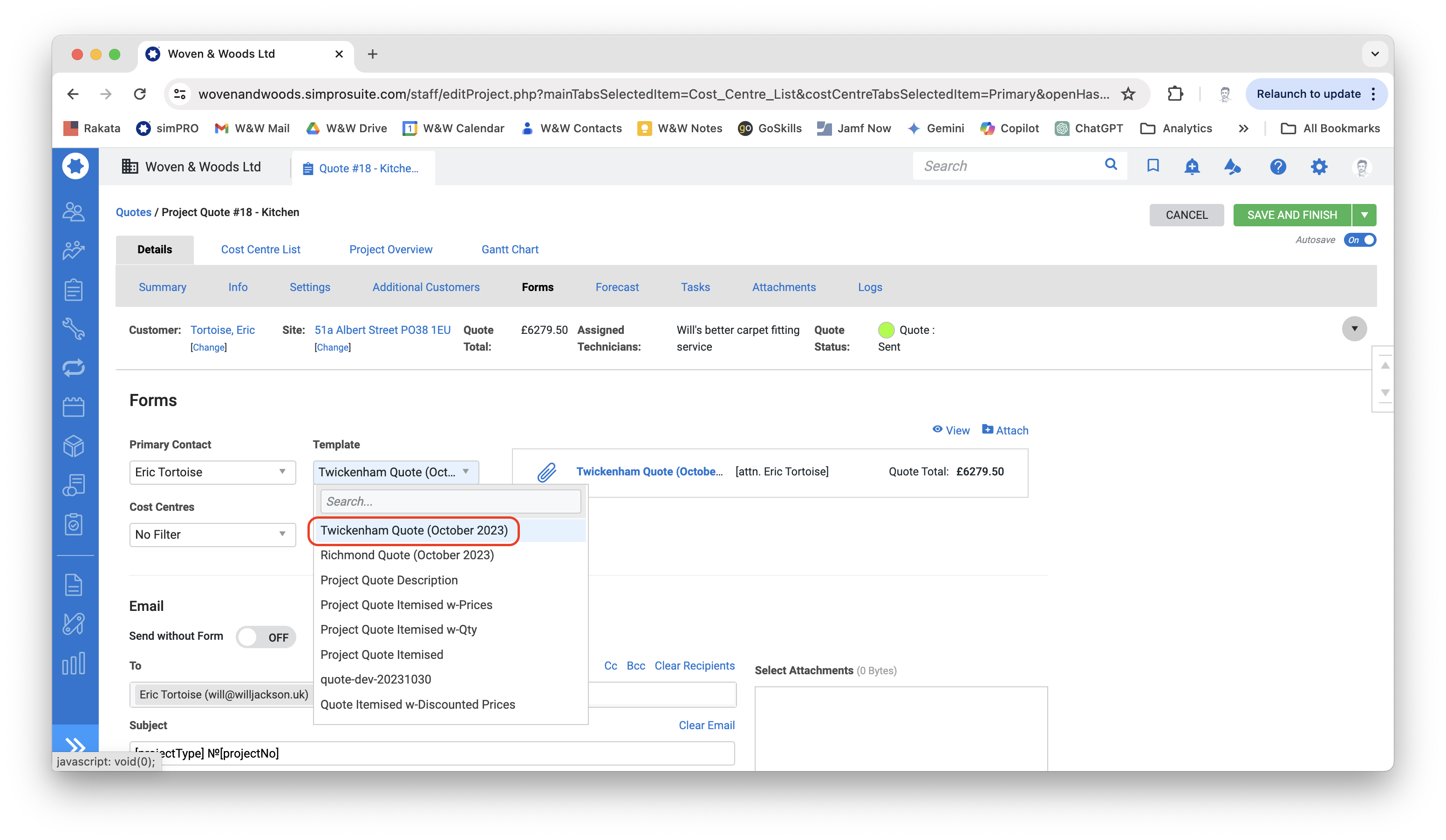 Email Quote to Customer