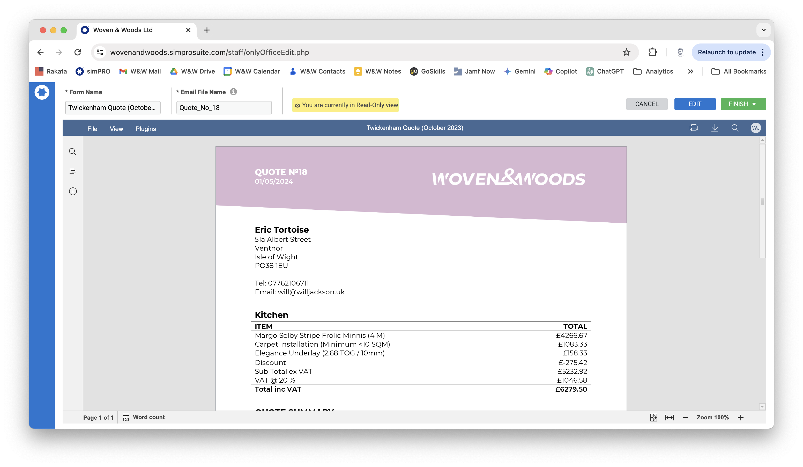Section titled “Edit Quote Layout”- If the quote looks a bit messy (e.g., tables split across lines), you can edit the layout by clicking the blue Edit button at the top of the screen.