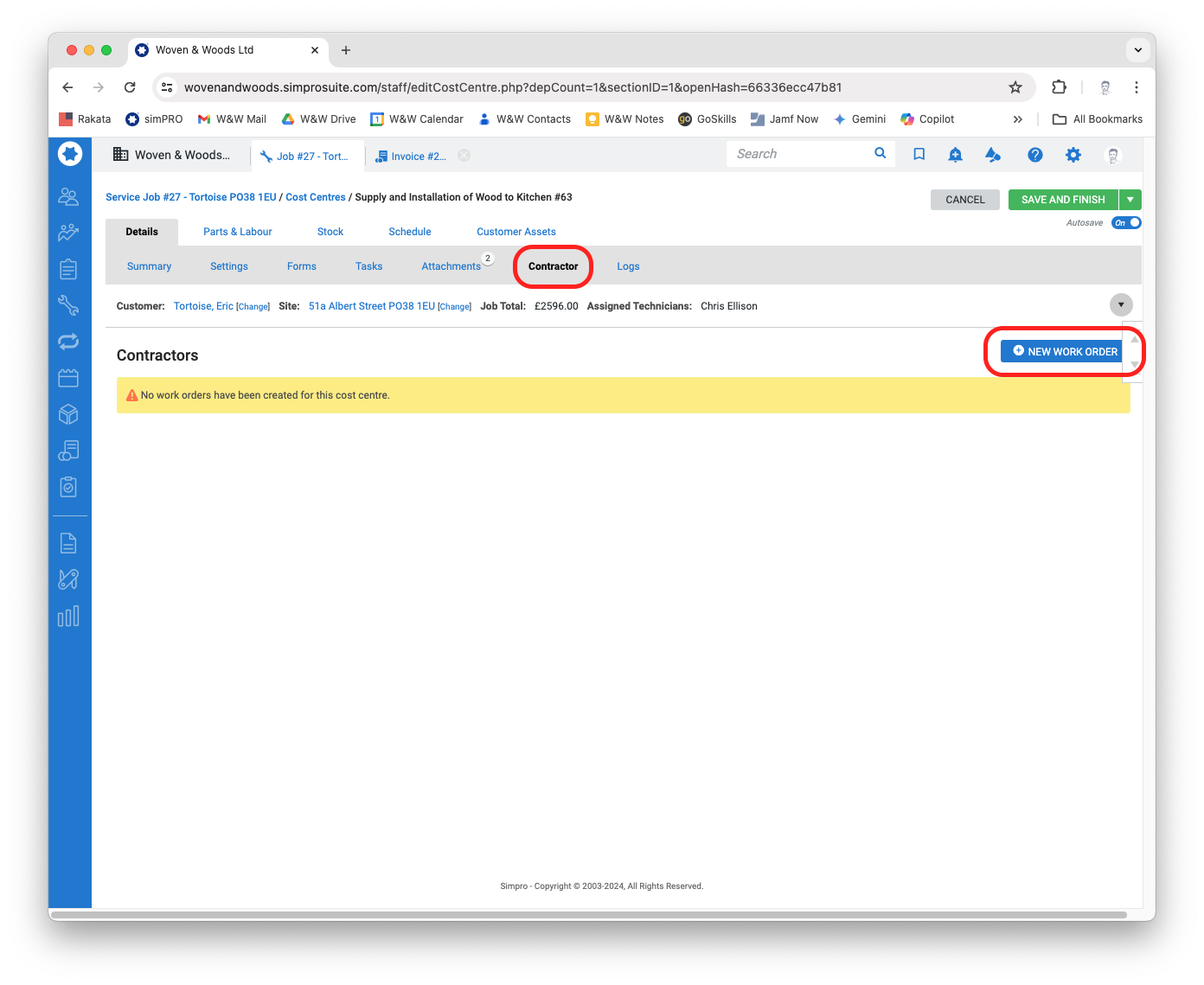 - Click the Contractor tab and then select the New Work Order button.