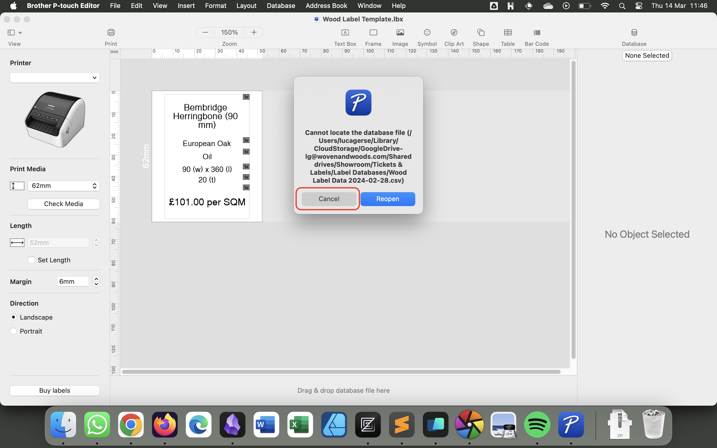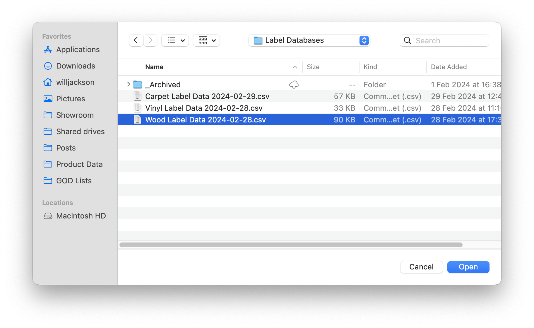 Google Drive/Shared Drives/Showroom/Tickets & Labels/Label Databasesand double-click the relevant file.