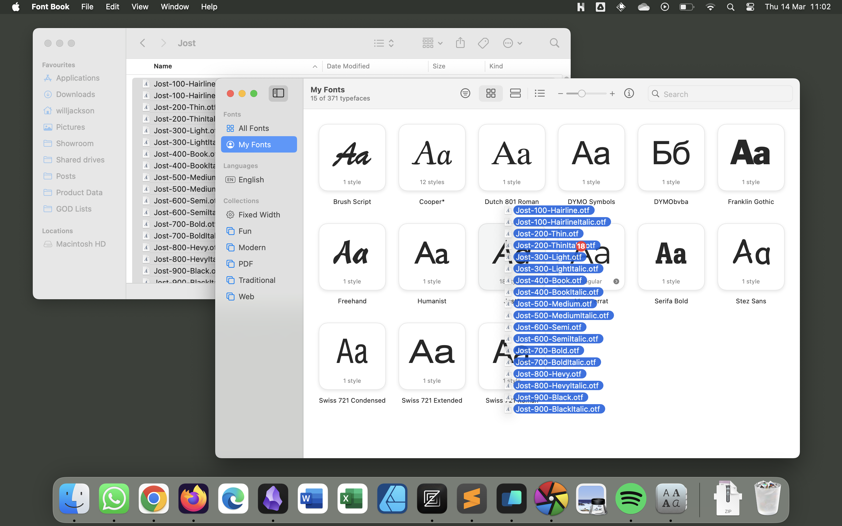 Google Drive/Showrooms/Fonts/Jost. - Highlight all the items in the folder with Ctrl+A, right click and select Install.