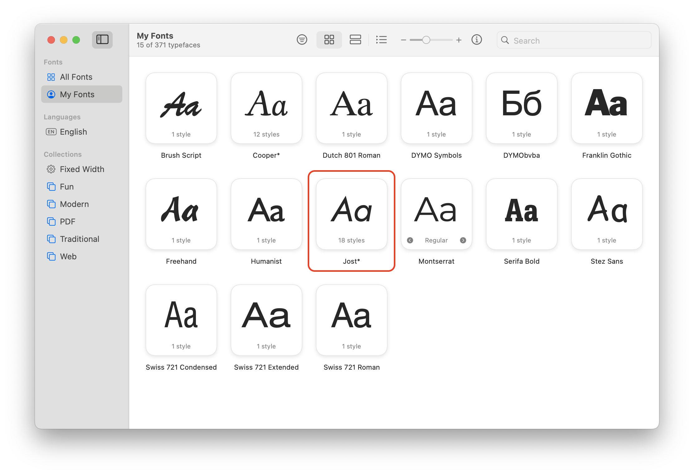 - The font should now be installed. Check that Jost appears in the My Fonts section to confirm.