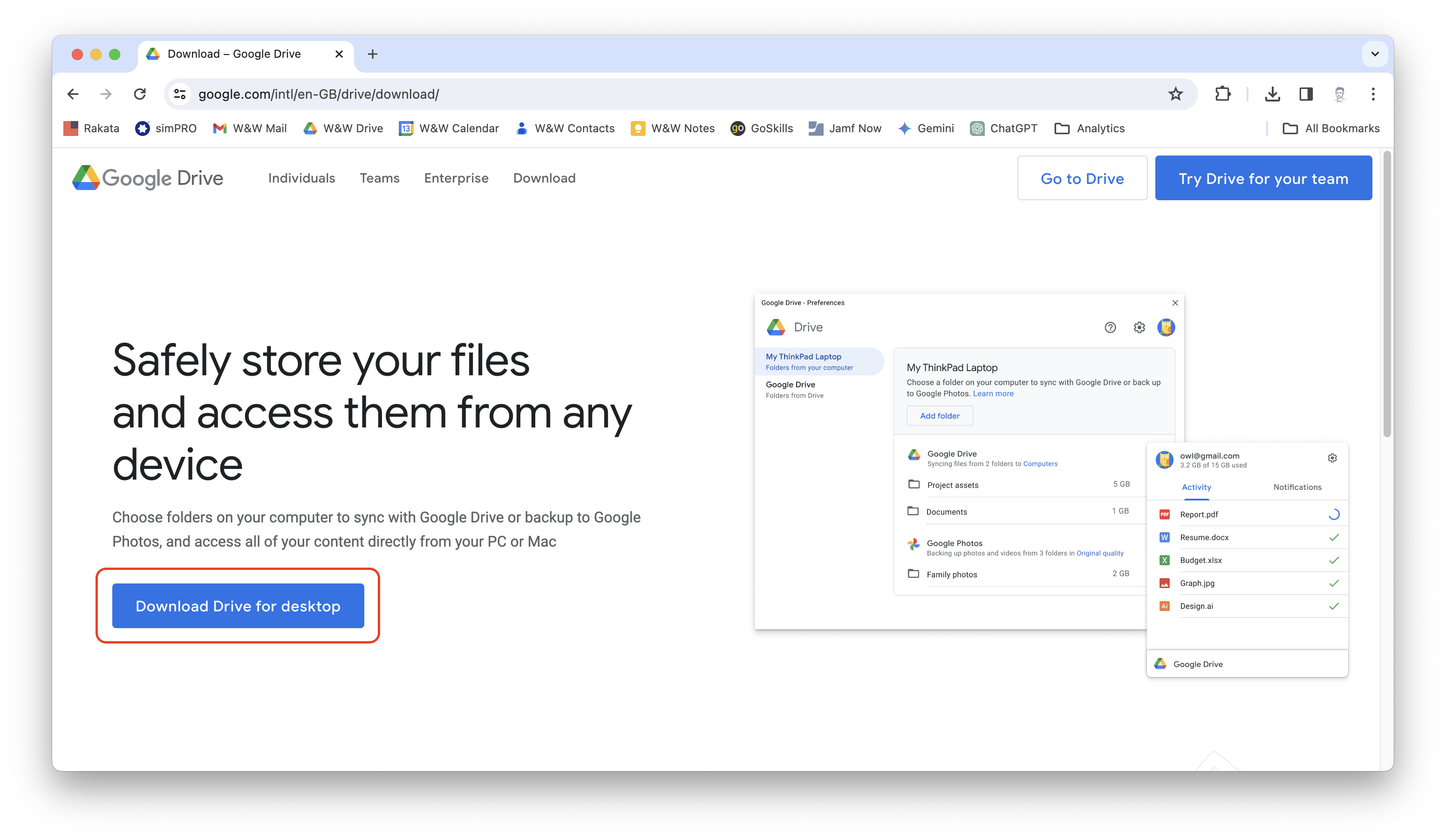 - Click the Download Drive for desktop button.
