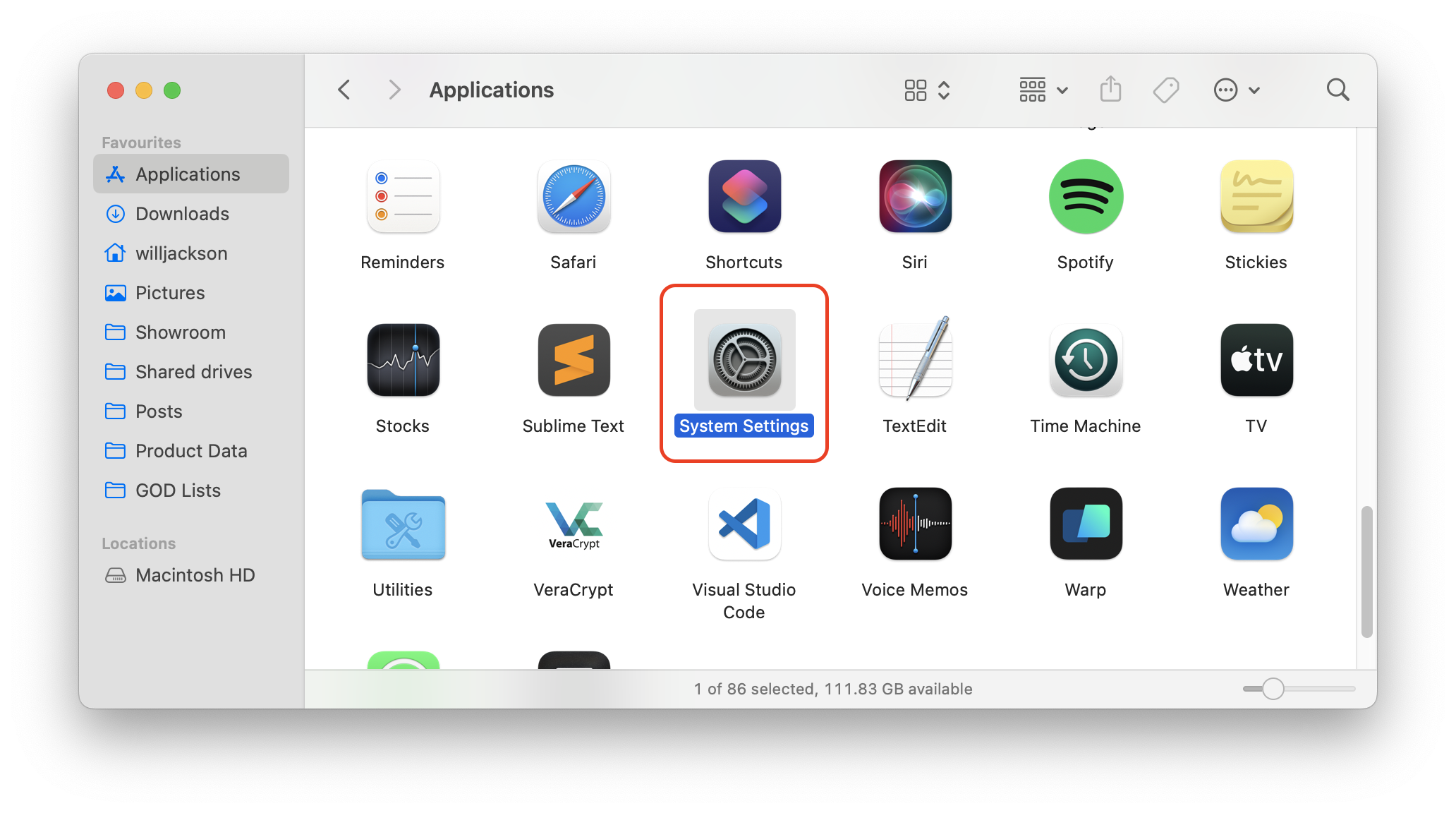 Section titled “Install Label Printer”- Open Finder, navigate to the Applications folder and double-click System Settings.