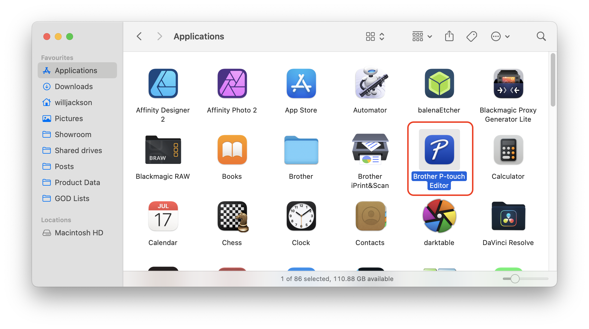 Section titled “Open the template”- Open a new Finder, navigate to Applications and open the application called Brother P-touch Editor. If it doesn’t appear, follow the steps in the Prerequisite section to install it.
