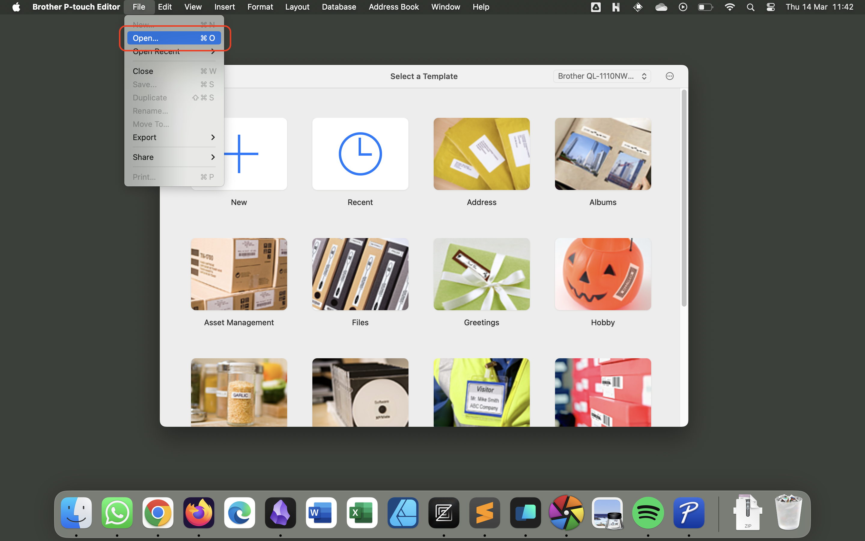 - If you have the Brother P-touch Editor open, you will need to close it completely and re-open it to use the new font. You can close an application completely in macOS by either: