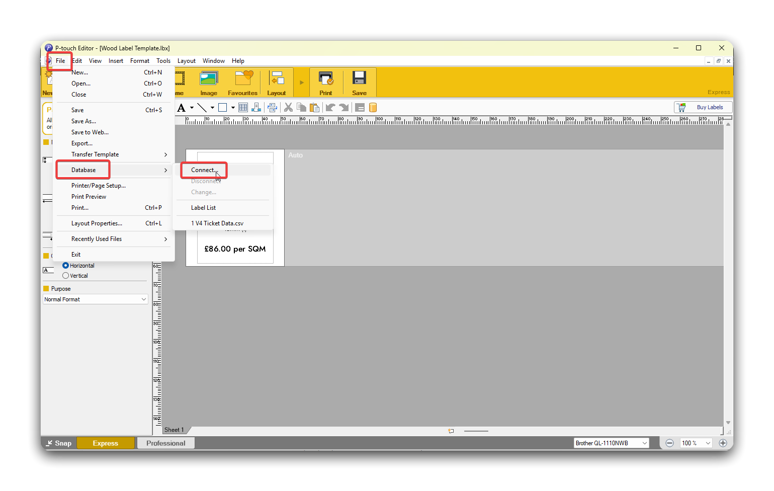 Section titled “Import Product Data”- Click the File menu, then Database and Connect….