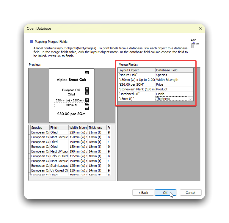 - In the next window, you will need to use the dropdown boxes on the right hand side to match up the labels with the data. Make sure you do this, otherwise the data won’t pull through properly.