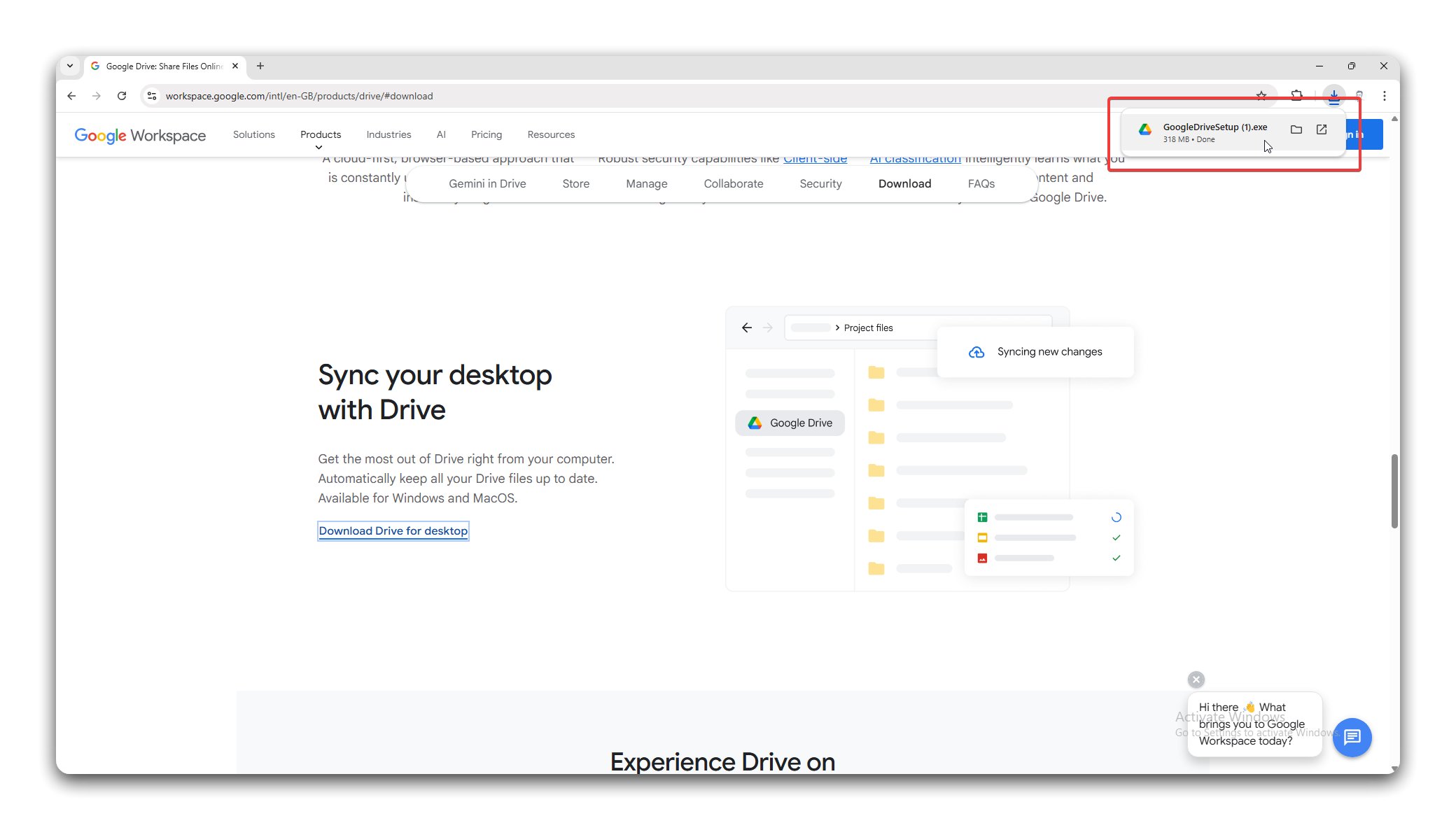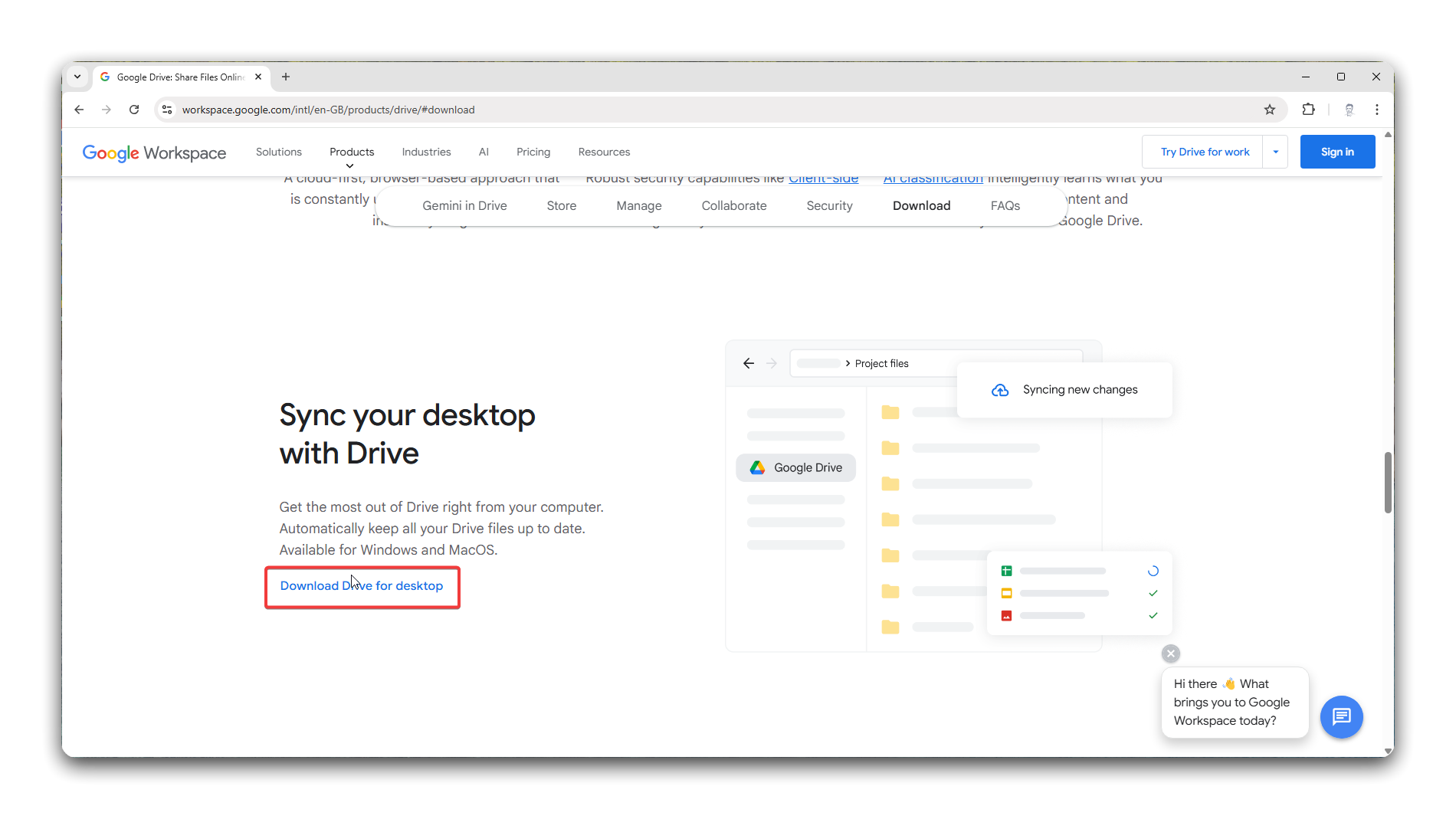 - Click the Download Drive for Desktop button.