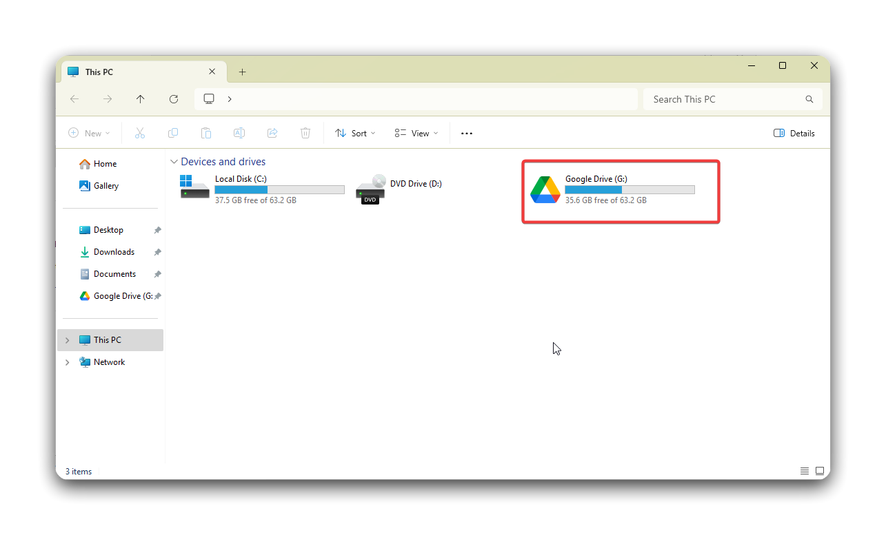 - After a few seconds, you should now see a Google Drive folder in your Home folder.