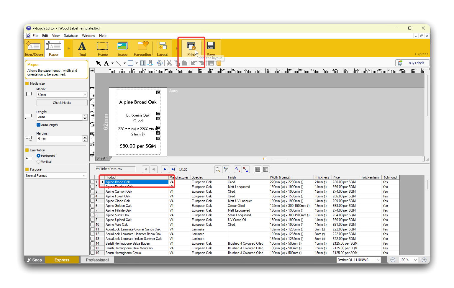 - To print a label, select the product - then click the File menu in the taskbar and select Print.