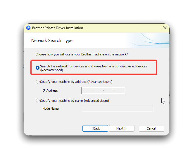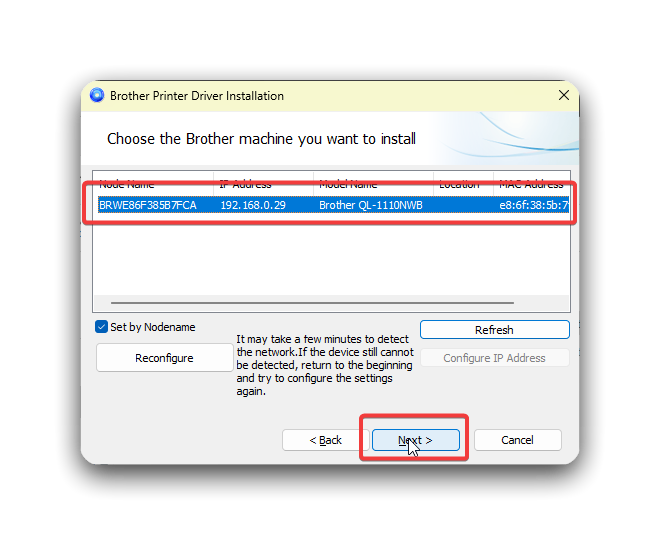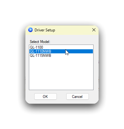 - When you get to this screen, select the option that says QL-1110NWB and click OK.