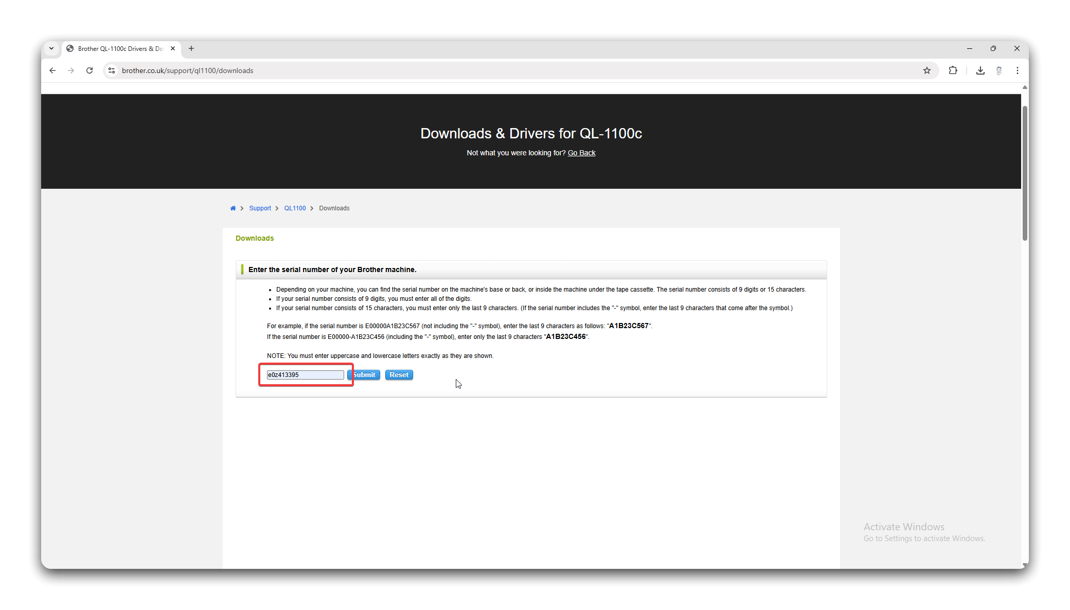 - To download the software, you will need to type in the serial number of a compatible printer. Enter
