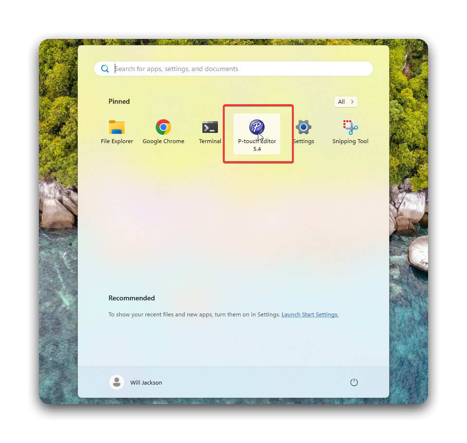 Section titled “Open the Template”- Click the Start Menu and select P-touch Editor.